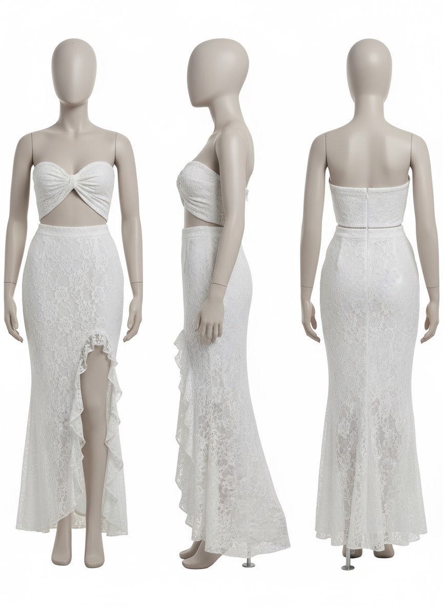 Perfect for any special occasion, its intricate lace design and strapless neckline make it a standout piece that promises to turn heads.